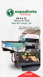 Prepare-se para nos encontrar na maior feira do agronegócio! A Zaamp estará na Expodireto Cotrijal 2026. Será uma excelente oportunidade para conversarmos sobre as Extrusoras e nosso novo lançamento Z480 Pro, venha conhecer de perto e estreitar laços. Agende sua visita ou passe em nosso estande !